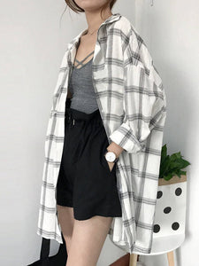 Harajuku Korean Fashion Oversized Plaid Checkered Shirt Overshirt (Black/White)