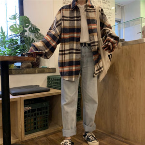 Harajuku Ulzzang Oversized Plaid Flannel Button Up Shirt (2 Colors)
