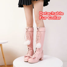 Big Sizes Harajuku Kawaii Aesthetic Sweet Lolita Pom Pom Fur Trim Lolita Knee High Boots