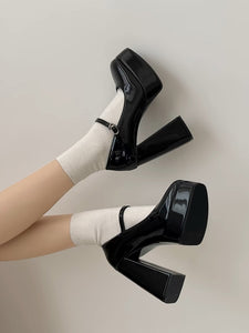 Womens Coquette Aesthetic Patent Leather High Heel Mary Jane Shoes