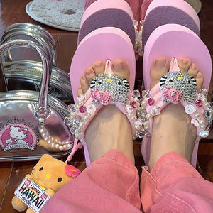 Kawaii Fashion Y2K Aesthetic Hello Kitty Platform Sandals Slides