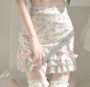 Harajuku Kawaii Fashion Dollcore Coquette Aesthetic Floral Chiffon Bow Skirt