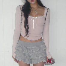 Y2K Coquette Aesthetic Womens Lace Bow Long Sleeve Pink Top